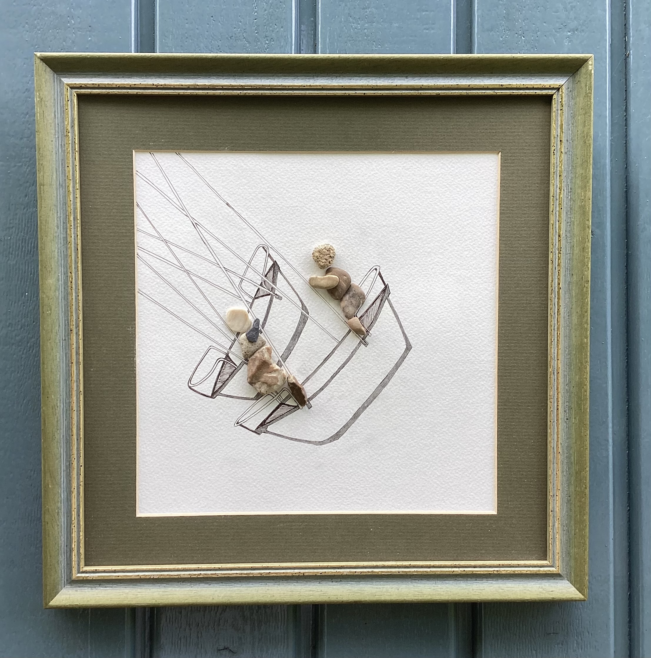 Dit schilderij handgemaakt; steentjes en pen tekening Het Kermis en voorjaars gevoel.
