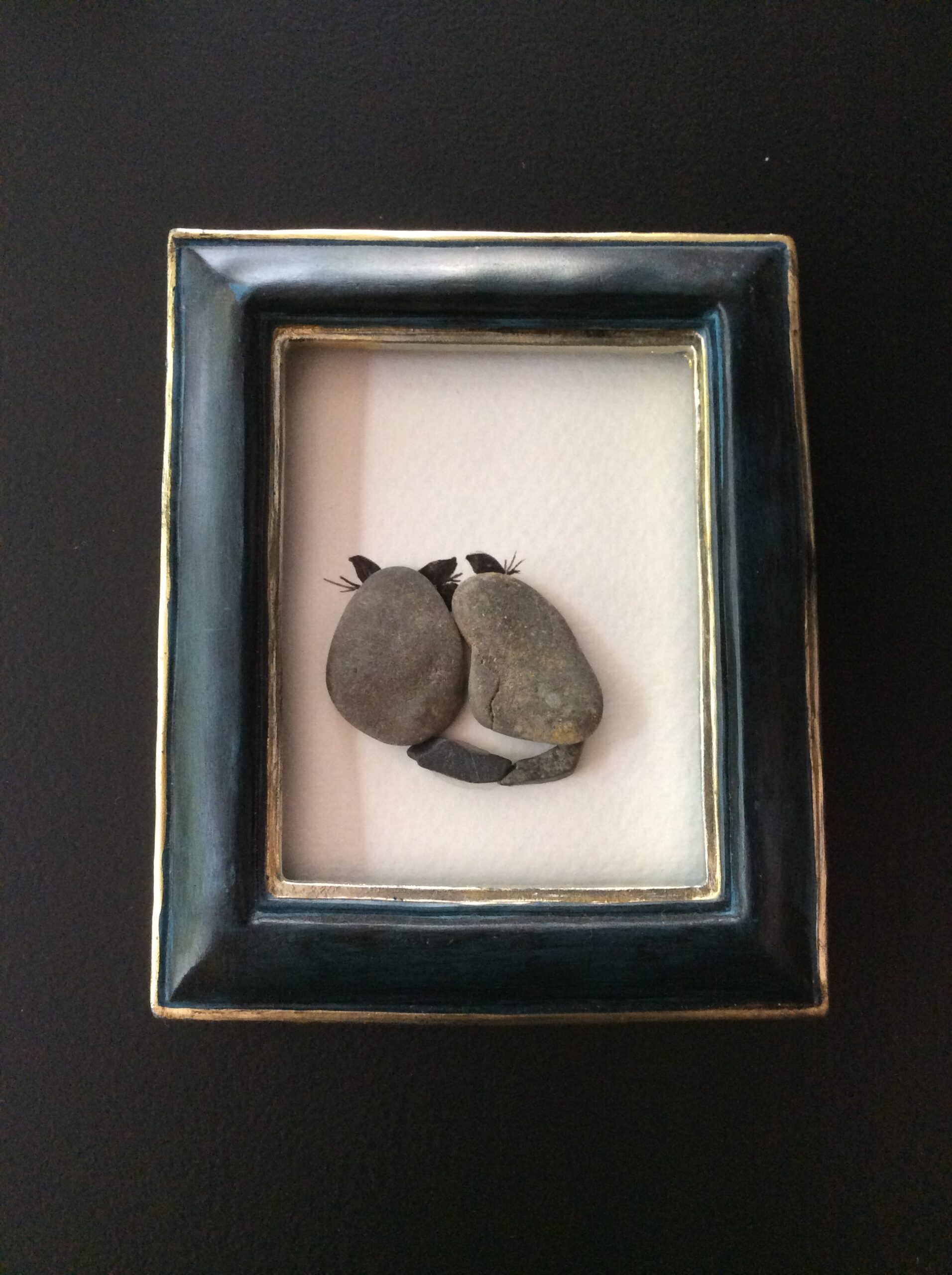 Lieflijke schattige poesjes van steentjes in een klassiek mooi lijstje. Handgemaakt.
